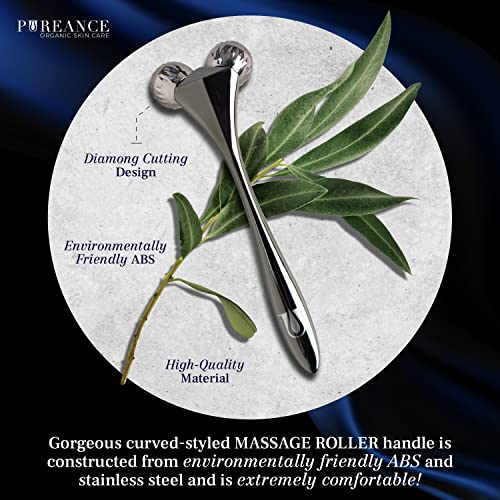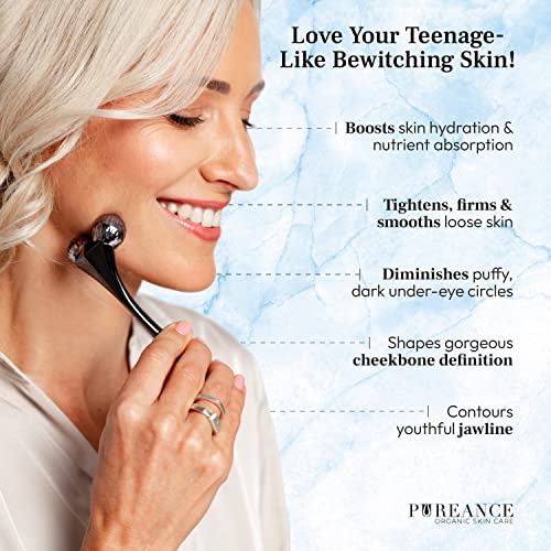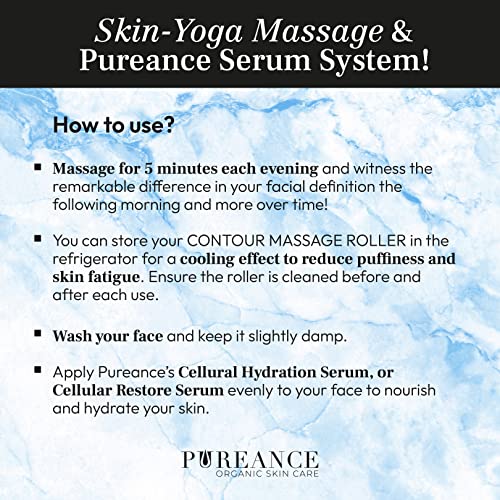 What’s the secret to brighter, younger looking skin at any age? Facial massage! As you get older, sunlight, stress, and pollution can take a toll, making your skin appear rougher and thinner. Serums and moisturizers can help brighten your complexion…. but if you really want to turn back the clock, facial massage is the key. For decades, high-end clinics have used facial massage to help tone, firm, and sculpt their client’s skin, giving them a glowing “moviestar look” without drugs or injections. Facial tools mimics their massage technique to boost blood circulation and tone facial muscles. The result is brighter, plumper, younger-looking skin that takes years off your appearance. With the facial massager from Pureance, you can have a “virtual facelift” every day. Combined with our skin serums, you’ll have dramatically smoother, tighter, more youthful skin – all in just minutes! Advanced Dual-Roller Design Our roller face massager is made from stainless steel and high-quality ABS. Two V-shaped rollers gently grip your skin for a soothing kneading effect. The rollers rotate 360° at a 70° angle, mimicking the soft pressure-point massage used in premium skincare clinics. The diamond-shaped massage head allows for use at multiple angles, so you can reach your face, neck, scalp, and more. Pampers Your Skin The massaging action improves blood flow, sending oxygen and nutrients to the skin surface. The facial roller massager promotes lymphatic drainage, helping remove toxins and cellular waste that can age the skin. The rollers also help exfoliate dead cells, revealing brighter, healthier skin cells underneath. Takes Effect Quickly Use this skin care roller daily with Pureance’s CELLULAR HYDRATION SERUM or CELLULAR RESTORE SERUM for a dramatically more youthful look. Together, they help firm and tighten the skin, while toning the jawline, sharpening cheek definition, and minimizing frown lines, folds, and wrinkles.