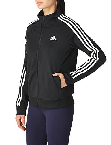 Keep warm and look sleek on this women’s adidas track jacket. Ribbing at the hem and cuffs, an entire zip and a stand-up collar assist you to adjust the coverage depending on where you might be and what you might be doing.