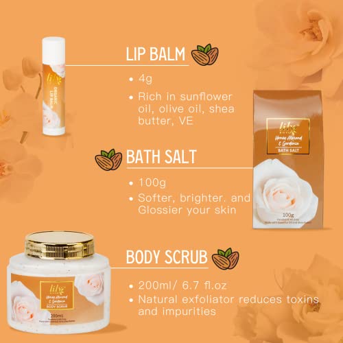♡【BATH SETS FOR WOMEN GIFT】 Exotic & delicate refreshing seductive Honey Almond & Gardenia scents,relax every pore and make you feel blissful like a holiday. The scent smells fresh and pleasant,our charming Lavender Essential Oil offers a relaxing aromatherapy to help relieve your mental and physical stress,creating a soothing, coming home fragrance that lingers and lasts.