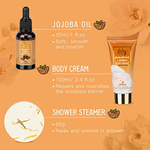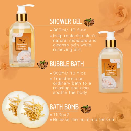 Spa Gift Baskets for Women, 12pcs Honey Almond & Gardenia Spa Kit with Shower Gel, Bubble Bath, Bath Bombs, Body Scrub…